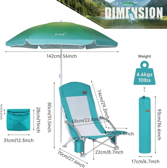 Beach Chair 2-Pack for Adults - With Umbrella, Cooler, and Carry Bag