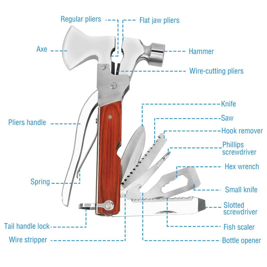 Outdoor Survival Multitool 7in Folding Multifunctional Axe Hammer Plier Knife Tool Camping