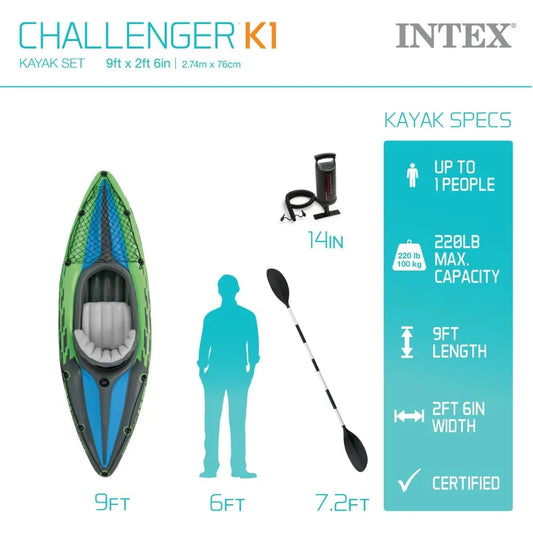 Challenger 1-Person Inflatable Kayak - Includes Paddle & High-Output Pump