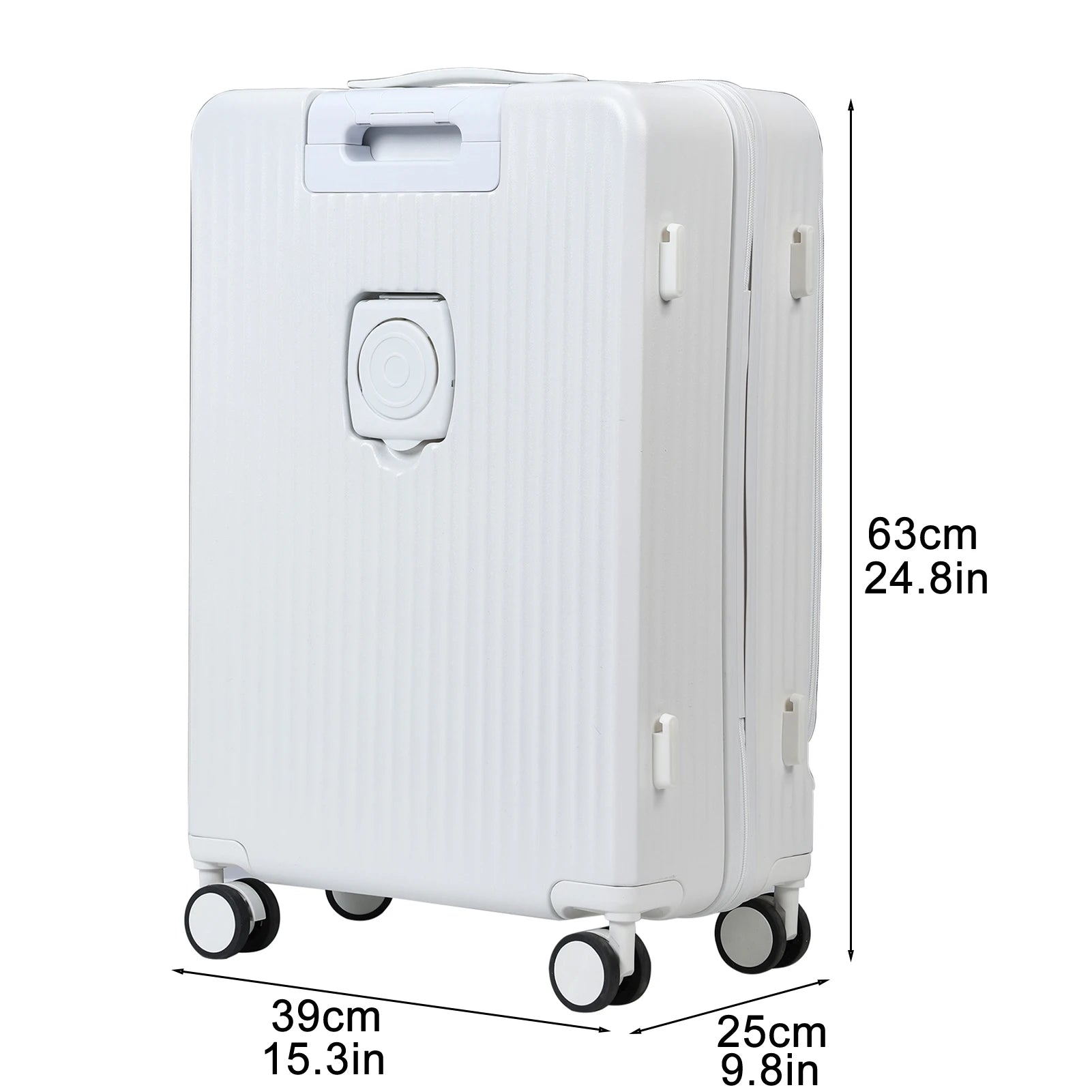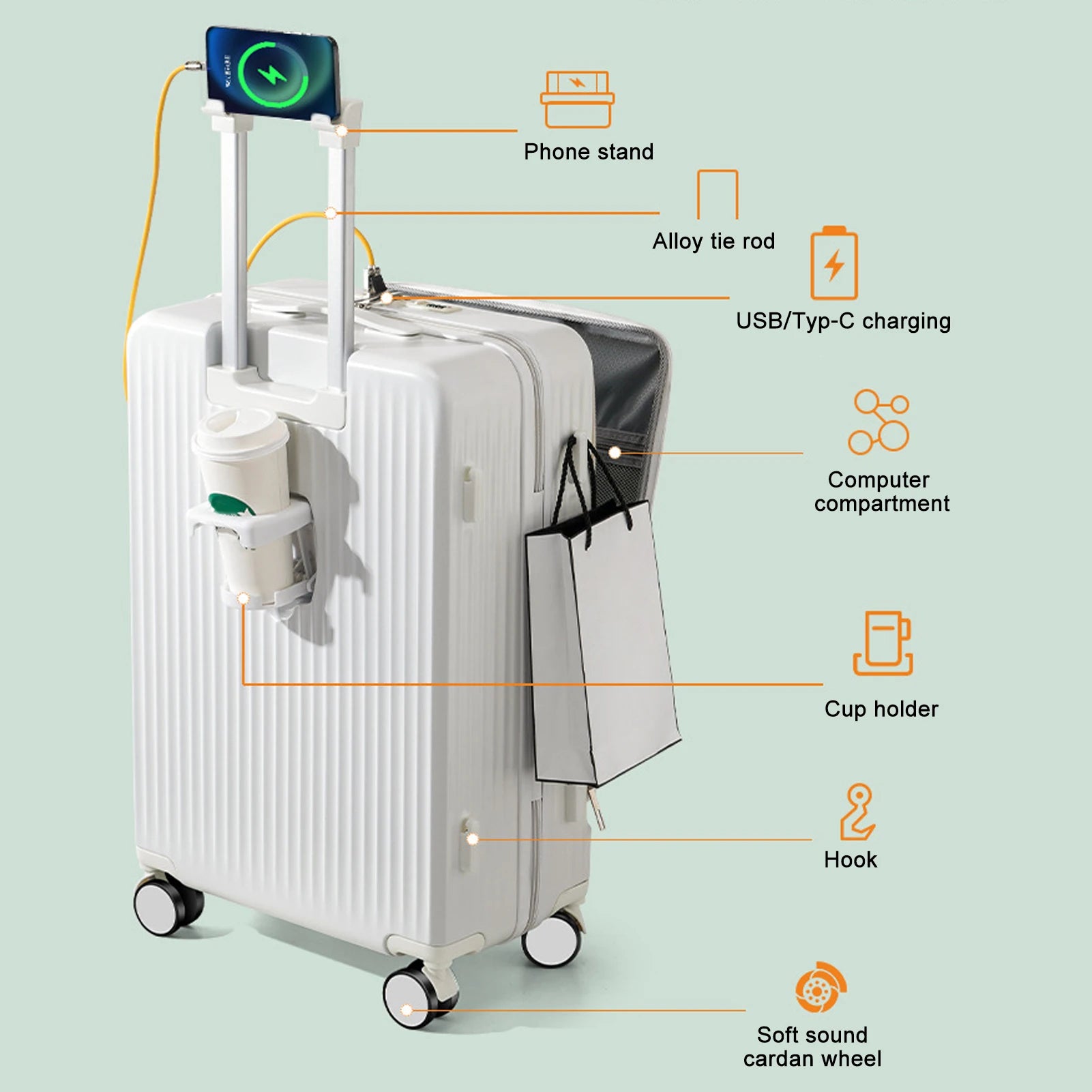 24-Inch Carry-On Suitcase - Front Open with Lock, Cup Holder, and USB-C Port