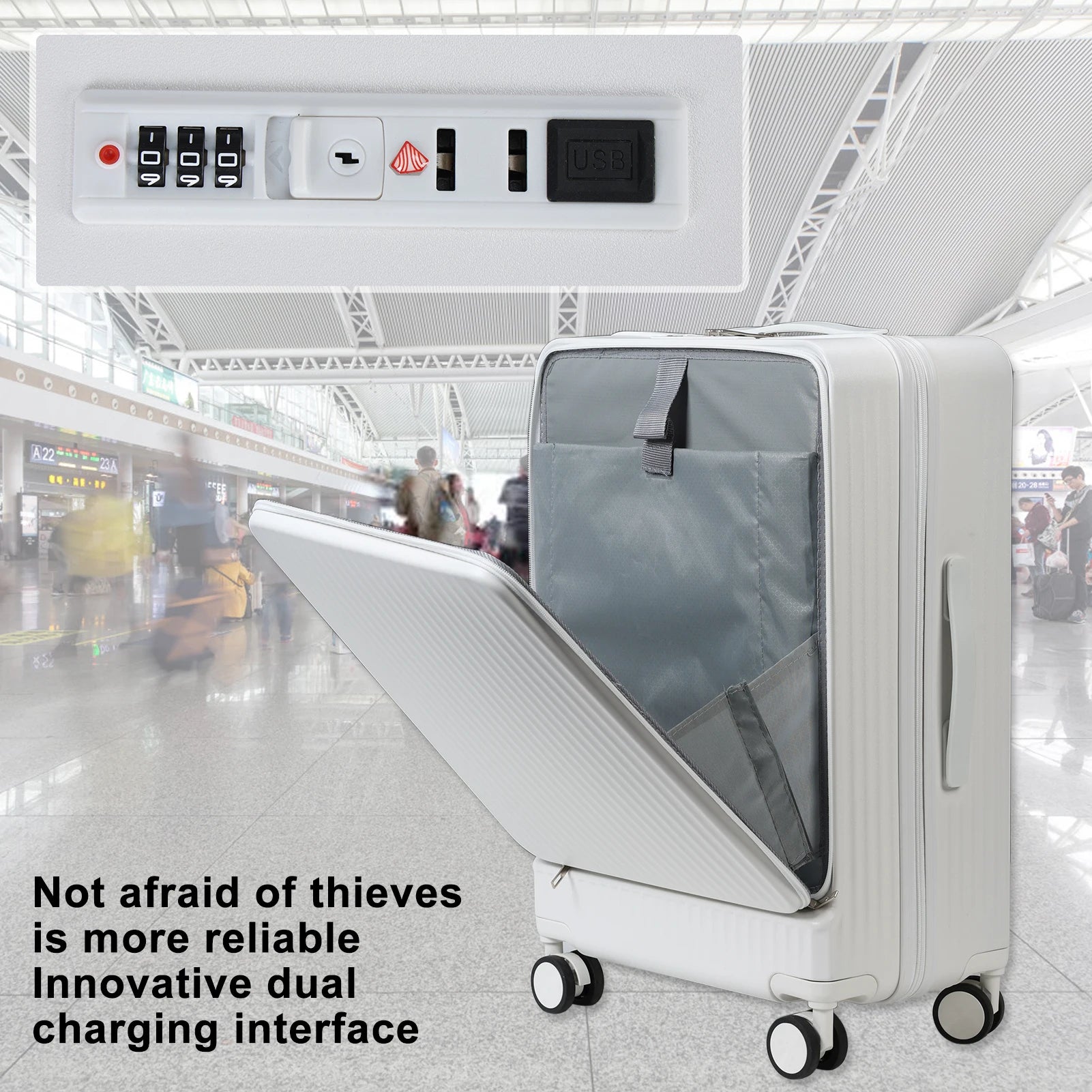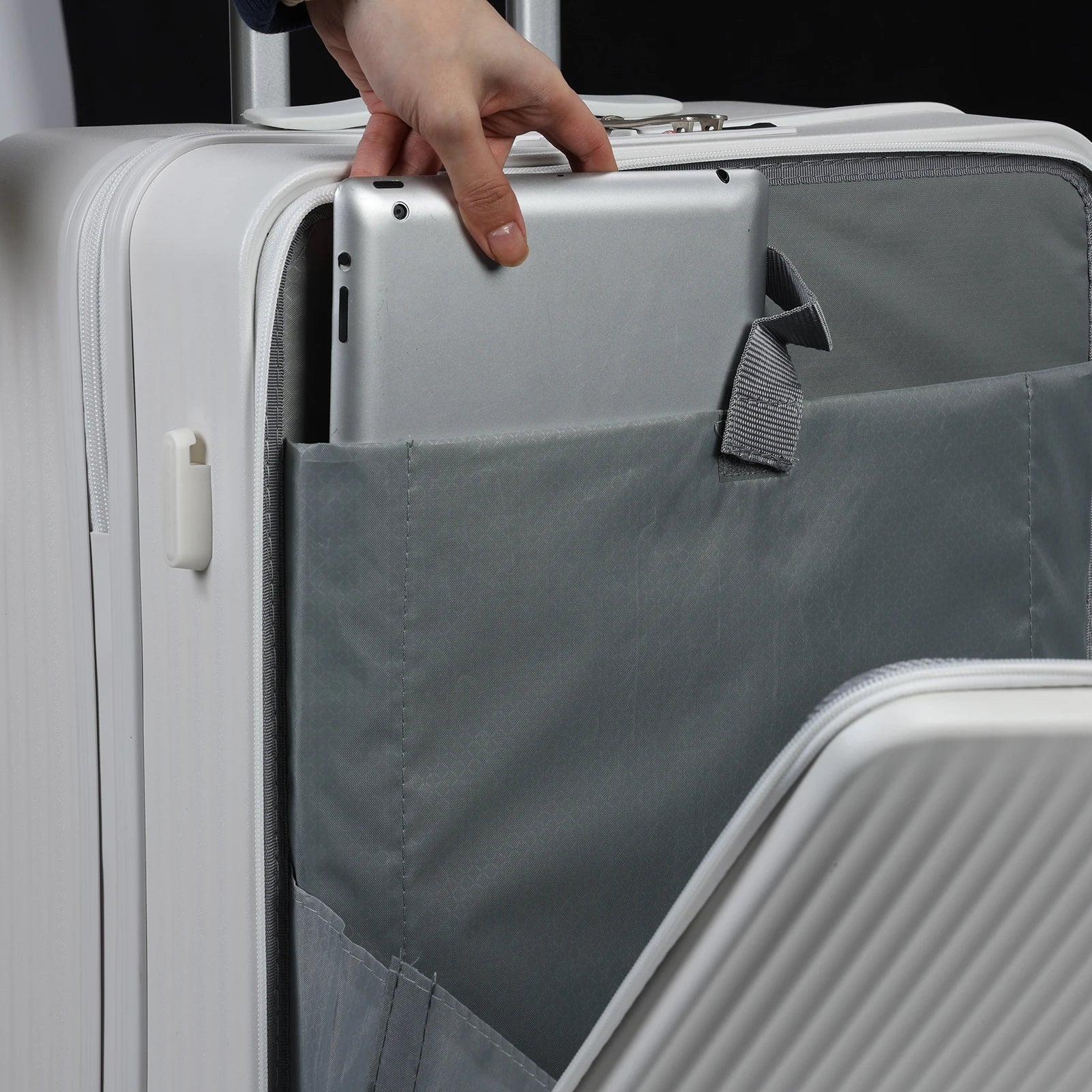 - Front-Open Compartment: Conveniently access essential items like laptops, documents, or toiletries without fully opening the suitcase.