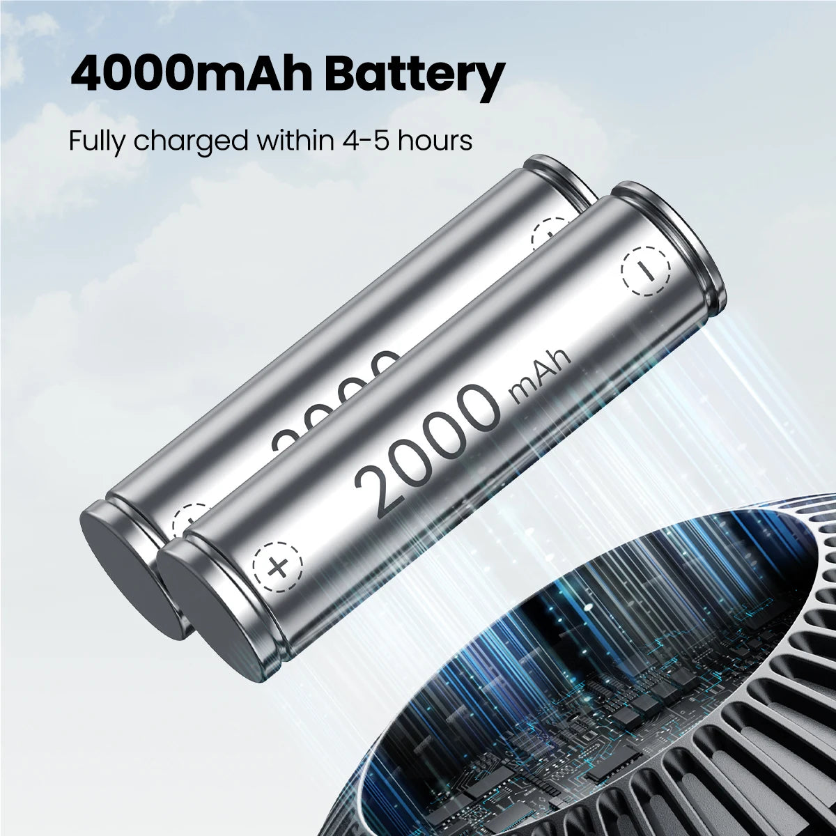 - Portable beach/camping fan with 4000mAh battery