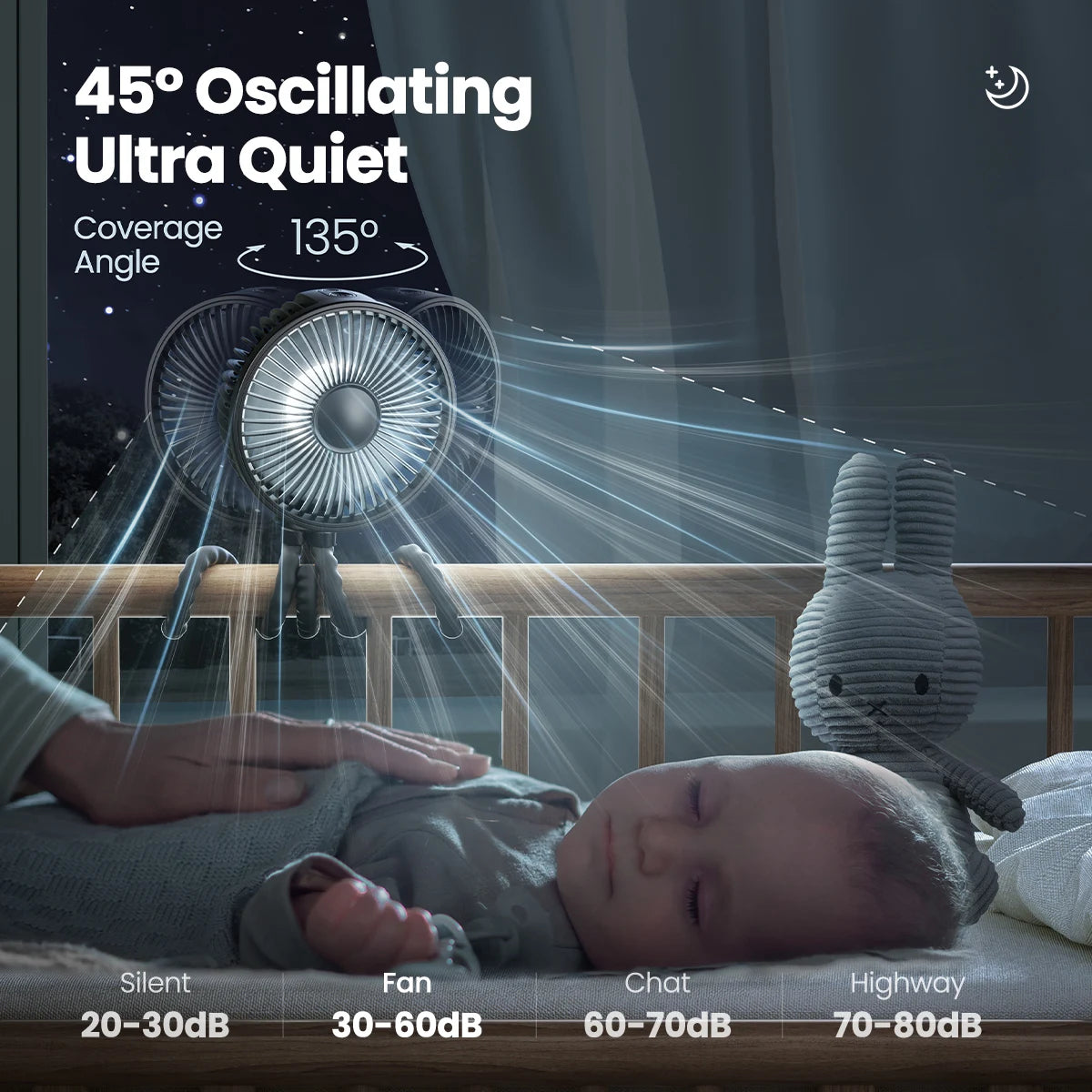 Mini Portable beach, camping, stroller Fan with Light