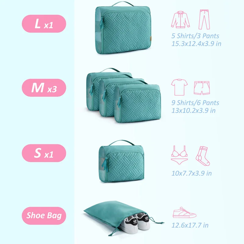 BAGSMART 6-Piece Travel Organizer Set - Compressible and Waterproof Packing Cubes