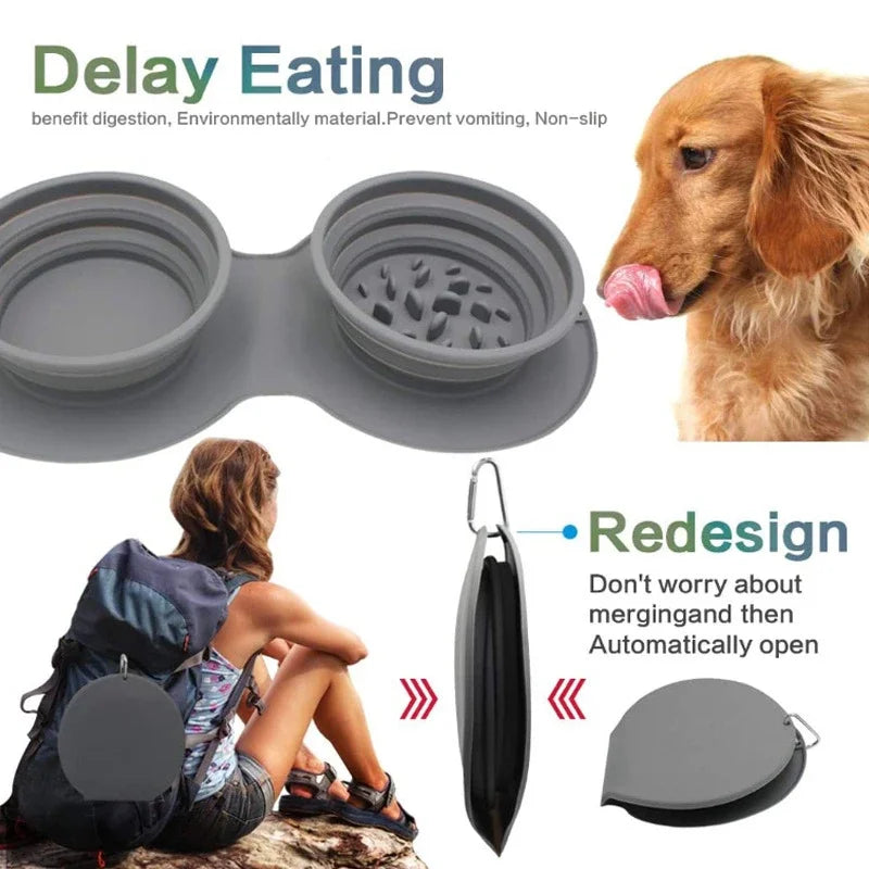 Portable Double Bowl for Dogs/Cats - Non-Slip Silicone