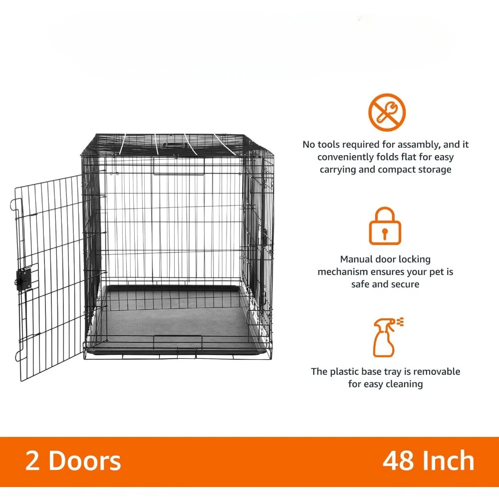 Foldable Metal Wire Dog Crate - 48" Double Door