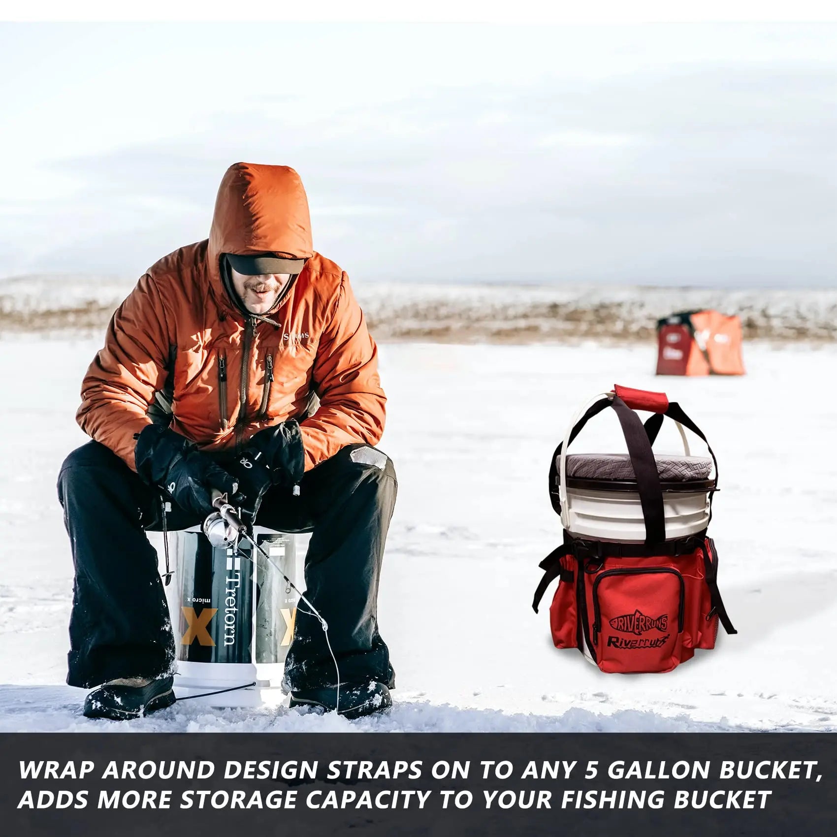 NEW Fishing Ice Fishing Bucket Tool Organizer Multiple pockets Adjustable Bucket Caddy Tackle Bag for 5-Gallon Bucket