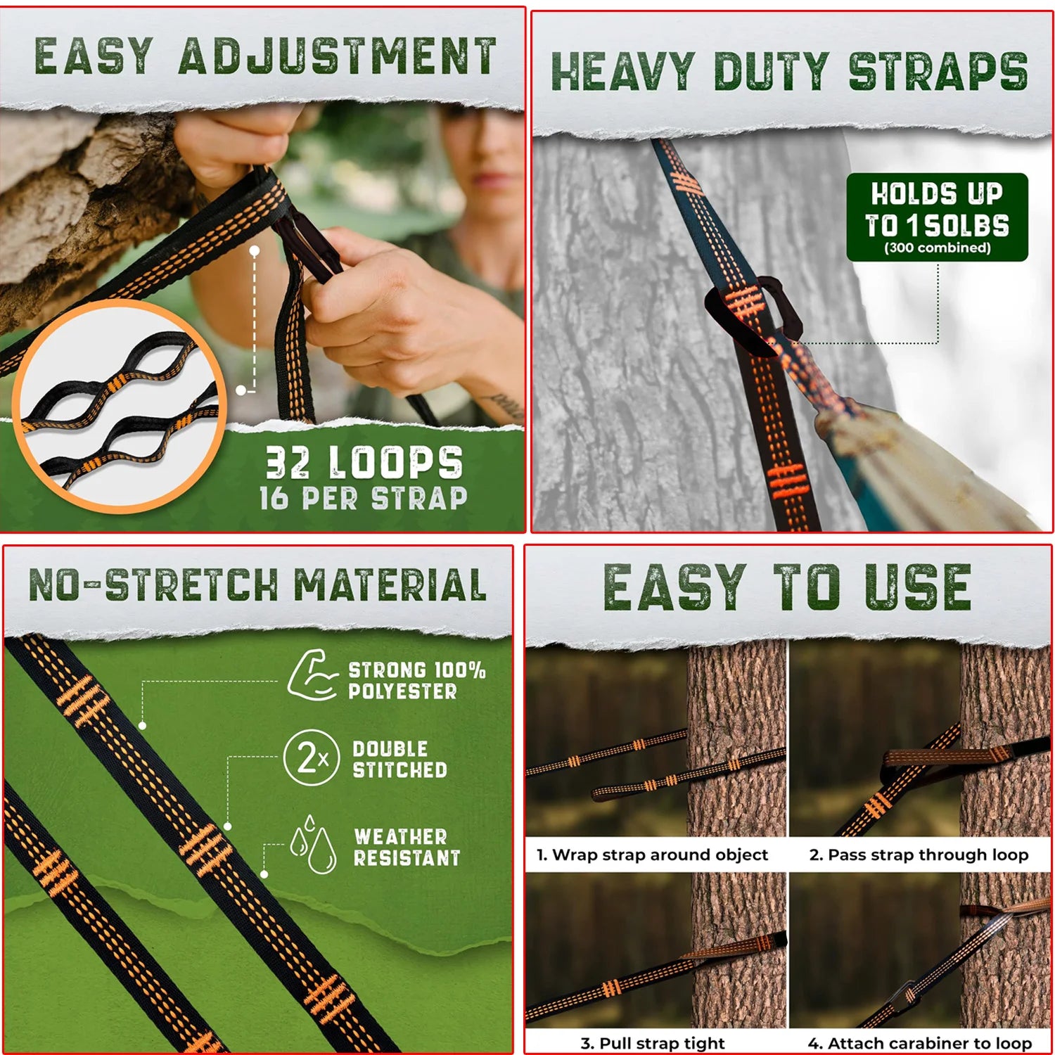 - Features adjustable loops and hammock straps for easy setup and versatility.